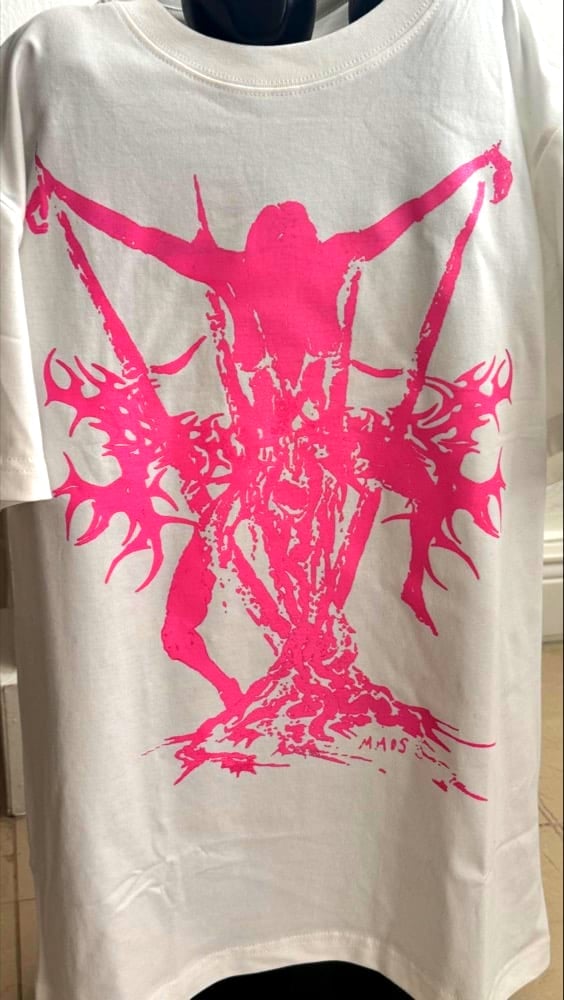 White with Pink Dripping Short Sleeve